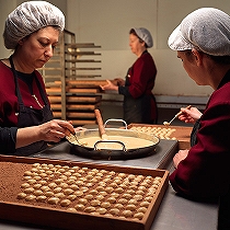 | Company Profile ボンボン・キューディー(Bombons Cudie. S.A.)は、伝統的なプラリネチョコレートに精通したスペインのメーカーです。 会社は、スペイン北東部バルセロナから西に60キロ、ワイン産地ペネデスで有名なヴィラフランカ・デル・ペネデスに位置し、3代目が経営を行います。 その歴史は、1946年、町で最も人気の有るベーカリーのボンボネーロ・マスター:アフランカ・デル・ペネデス氏によって、カラメル状のアーモンドをココアパウダーで覆った伝統と独創性を組み合わせたプラリネチョコレートが誕生、大きく評判を呼びました。