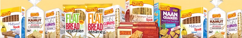 スージーズブランドの製品は、コレステロールゼロで更に低脂肪を売りとした、栄養価が高いホールグレイン素材を主とし、カムート(KAMUT)と呼ばれる古代穀物の一つ「コーラサンコムギ(Khorasan Wheat)」や エジプトを起源とする 9000 年以上前のヨーロッパで栽培されていた「スペルト小麦(Spelt:Triticum spelta)」などを原材料に使います。 また、ローグルテンやセリアック病の人々に対応したコーンを主としたグルテンフリーも取り扱い、常に、健康的でユニークな美味しい食品を提供しています。 そして、フラットブレッドやブレッドスティック、キヌアミルク、パフケーキ、オーガニッククラッカー&ビスケットを 北米地域の 7000 以上の食料品店や大手スーパーマーケット、ほとんどの健康食品店で販売する他、世界中に製品を輸出、12カ国以上で展開しております。