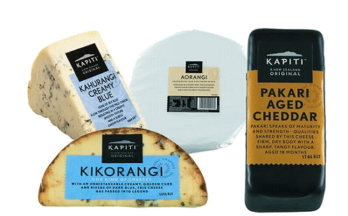 カピティチーズの主な製品は、近年急成長を遂げる20種のカップアイスクリームと3種のスティックシャーベットのアイスクリーム部門やグルメヨーグルト、更に創業以来の繊細でなめらかな青の脈を形成し香ばしい風味を持ち合わせた「カピティ・カフランギ・クリーミーブルー(Kahurangi Creamy Blue Cheese)」や、素晴らしい風味を付け加えたチェダーをワックスで覆った「パカリ(Pakari)、ポートワイン(Portwine)、チュテレモアナ(Tuteremoana)、ソフトでクリーミーなフレッシュチーズに、唐辛子やニンニク、ハーブを組み合わせた「クリームチーズ(Kapiti Cream Cheese)」、スイススタイルのエメンタールチーズや12ヶ月熟成させた伝統的なゴーダなどの「セミソフトイエロー」、素朴な酵母の香りとほんのり甘くマイルドでバターの風味を持ち合わせた「ラマラチーズ(Kapiti Ramara Cheese)」、カヒカテア・カマンベール(Aorangi Brie Cheese)やアオランギ・ブリー(Kahikatea Camembert Cheese)のホワイトチーズなど、最高のニュージーランドの食材を使用し独自の製法で手作りで作られるチーズ製品を製造し、2005年の資本参入によって世界第4位のニュージーランド最大の乳製品会社「フォンテラ」から販売されます。