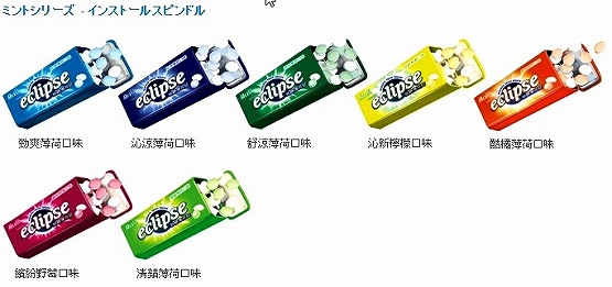 ![]() Thanks By www.wrigley.com.tw 本家アメリカでは、ミントタイプは、「Pepper Mint」と「Winter Frost」「Cooling Mint」 「Cool Breeze」「Berry」の5種類発売、ガムが4種の11品目が発売されます。日本では、ガムは発売されませんが、この他に青のウィンターフロスト、水色のペパーミントの他に、緑のスペアミント、黄色のアイスレモン、黒のストロングミント、5種類発売。そして、リグレー台湾( www.wrigley.com.tw)がもっとも種類が多くさらに2種類追加されて7種類あるようです。 |
